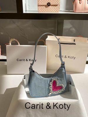 Borsa da mano in denim a forma di cuore per donne con manico singolo chiusura a cerniera rivestimento in cotone